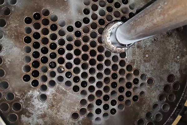 煮沸鍋中加熱列管大多為不銹鋼,且列管比較長,大多超過2米,列管數(shù)量較多;列管堵塞物近似碳化物,耐酸耐堿常規(guī)化學(xué)品無效。我公司研究了嘉士伯(中國)啤酒工貿(mào)有限公司的列管堵塞狀況專門研究了疏通方法,在實際使用中快速而安全地疏通了全部列管,在進(jìn)一步改進(jìn)的基礎(chǔ)上更加高效完成昆明華師啤酒有限公司煮沸鍋加熱列管疏通